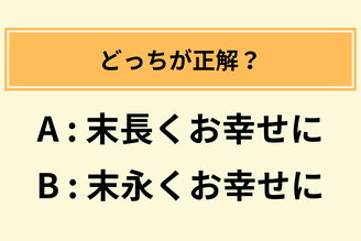 ドキッ…【どっちが正解?】「末長くお幸せに/末永くお幸せに」分からなかった人、社会人失格ーー!【社会人クイズ】