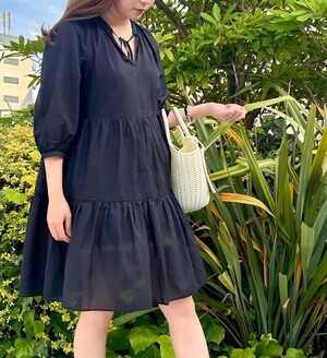 店員の友人ゴリ推し「意外にイケるから!」【ユニクロ】「歩く度にふんわり」二の腕とお腹カバー「ティアードミニワンピース/7分袖」購入レポ