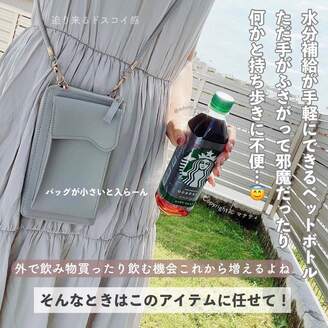 「ボトル飲料、バッグに入らない(泣)」問題→【キャンドゥ】で解決!「両手が空いてラク」お出かけ必需品