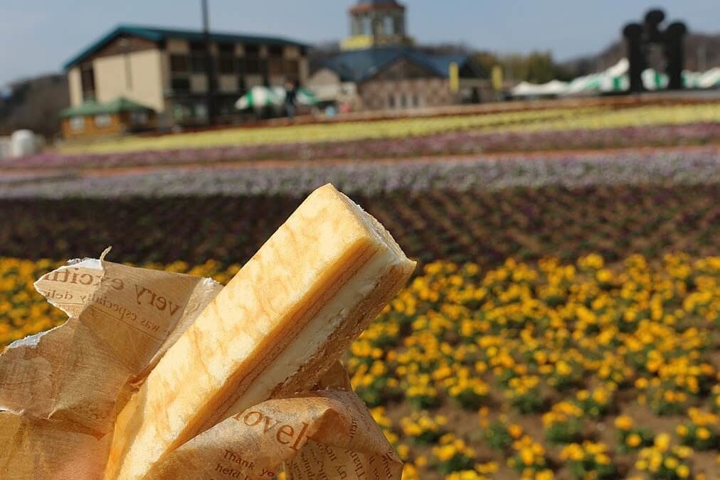 茂木産コシヒカリの米粉を使ったふわふわのバウムクーヘンに、チーズを挟んだ一品。土・日・祝日のみの限定販売です。