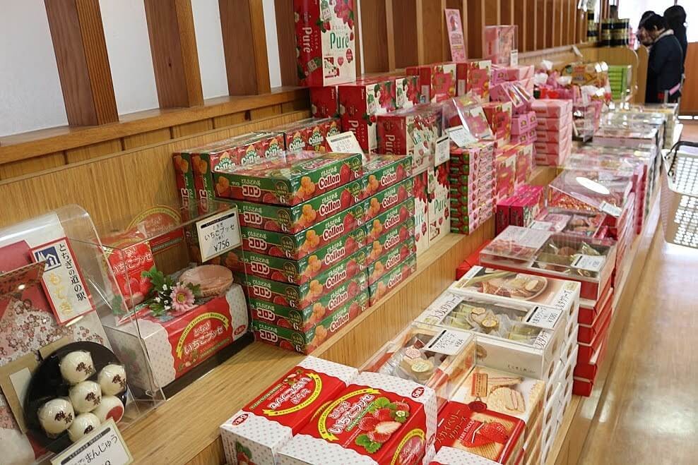 地元、栃木県の「とちおとめ」味のお菓子のほか、完熟いちごを使ったロールケーキやたい焼きなどのスイーツは必食。