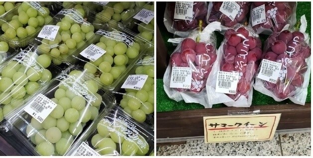 フルーツ栽培が盛んな甲州市ならではの、採れたてぶどうが売店に並びます。シャインマスカットやピオーネはもちろん、県外では珍しい品種も。手頃な価格なのも魅力です。