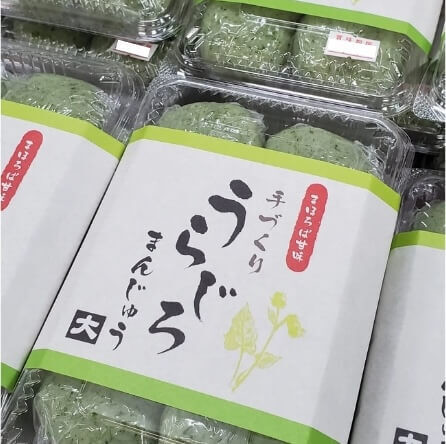 オヤマボクチの葉を生地に練り込んだ、甲州市大和地域の郷土菓子。中にはやさしい甘さのあんこが入り、素朴で食べやすい味わいです。「やまなしの食」にも選ばれました。