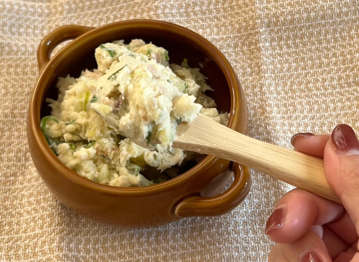 作り方は一般的なポテトサラダと変わりませんが、具材を少し変えるだけでこんなに美味しくなるなんて驚きです!個人的にハマって何度も作っています(笑)。