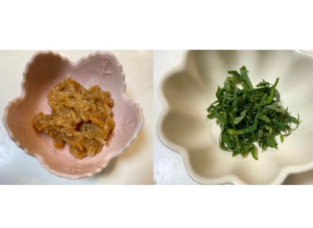 大葉・ネギ・梅干しを加えて和えたら、完成です!
