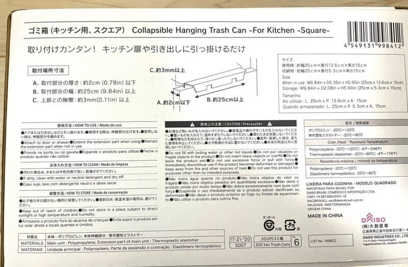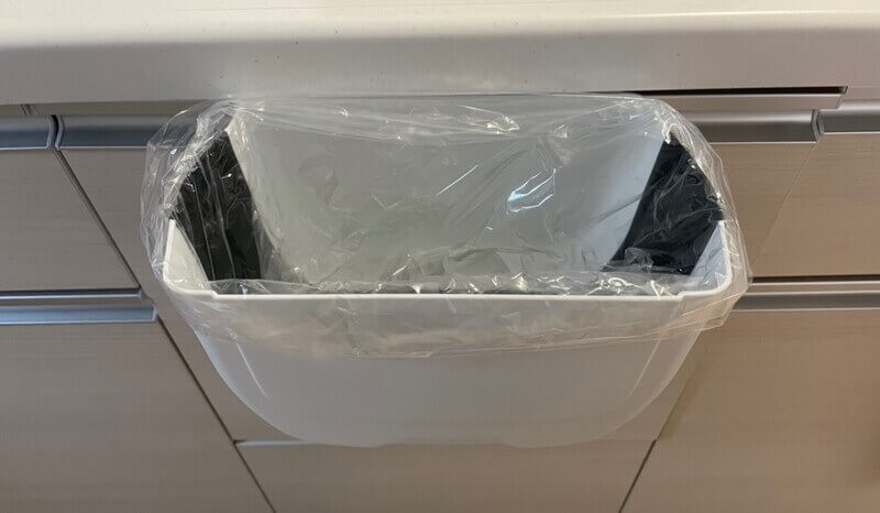 キッチンの引き出しや扉部分に引っ掛けて使うゴミ箱です。