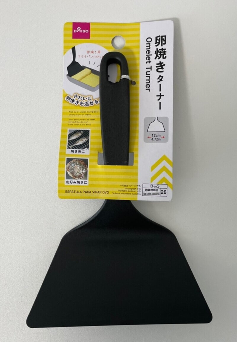 きれいに卵焼きが返せるフライ返しです。先端の幅は約12cmになっていて、卵焼き用のフライパンの幅は一般的に13cm~14cmぐらいなので、ちょうど端から端まで届くようになっています。