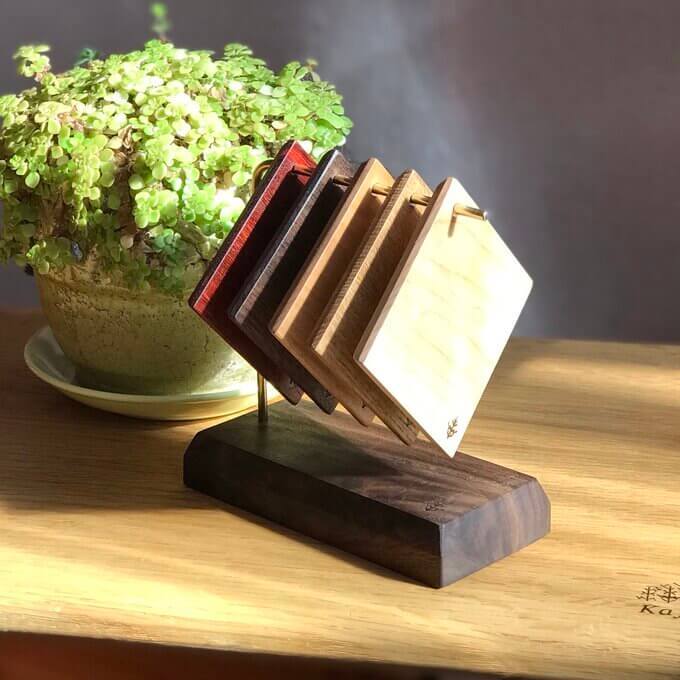 こちらの作品は、パドック、ウォールナット、チェリー、ナラ、ハードメイプルの5種類がセットになっています。