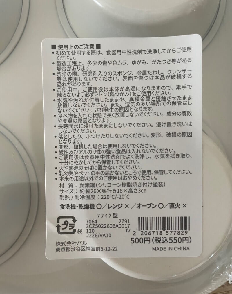 マフィン型 ¥550(税込)