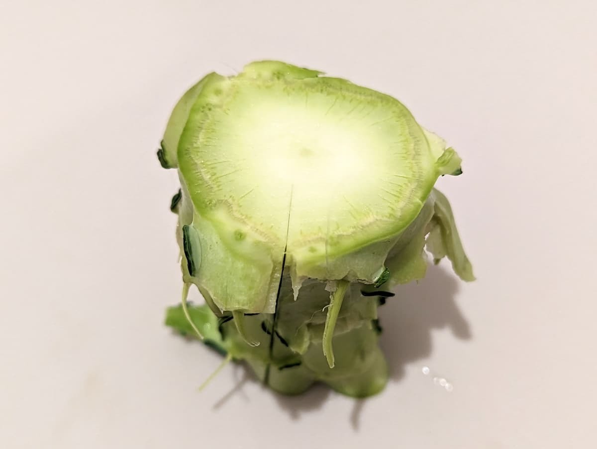 ブロッコリーの茎の周りには、筋が集まった皮のようなものがあります。(以降は皮と表記します)この皮が「茎がかたくて食べにくい」原因。