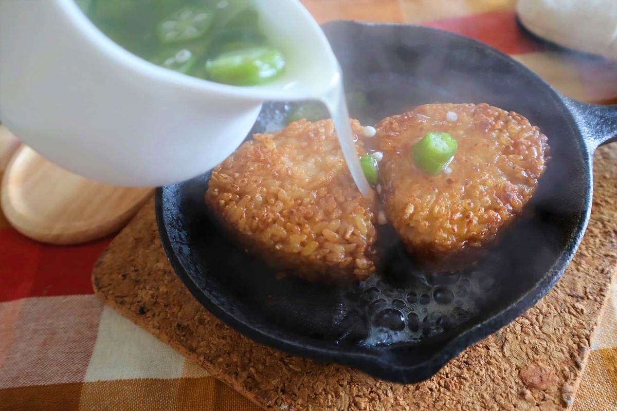 それでも、あんをかけるとジューッという音とともにおこげとおだしが絡まるのは、アツアツにしたスキレット鍋でしかできない技なのでぜひ体験してもらいたいですね。