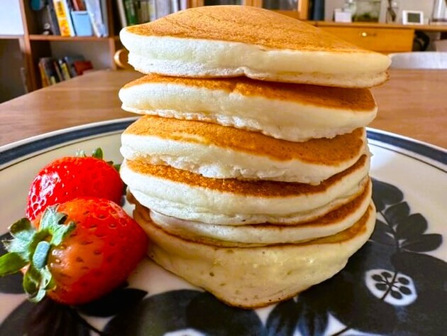 材料3つで、卵不使用なのにふんわりやわらか。「こっちの方が好きかも?」と思ってしまう、感動パンケーキです。