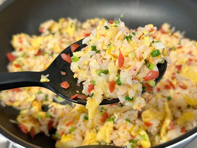 水っぽい食材が入っていないので、テクニックがなくても簡単にパラっとしたチャーハンを作ることができますよ。