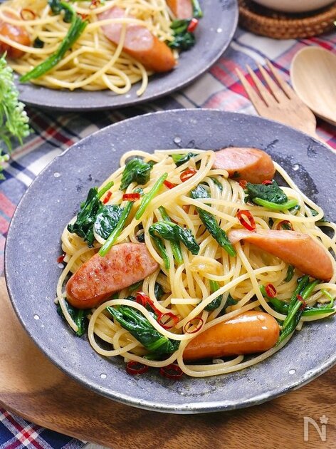 ②ウインナーとほうれん草のペペロンチーノ