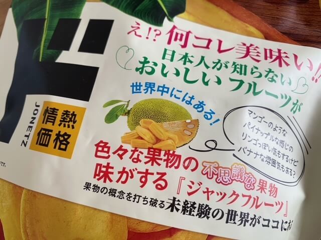 原料を見ると、ジャックフルーツと植物油しか記載がありません。