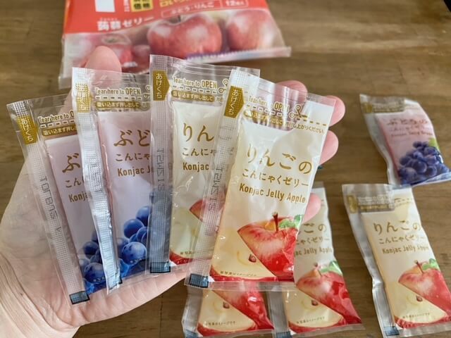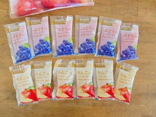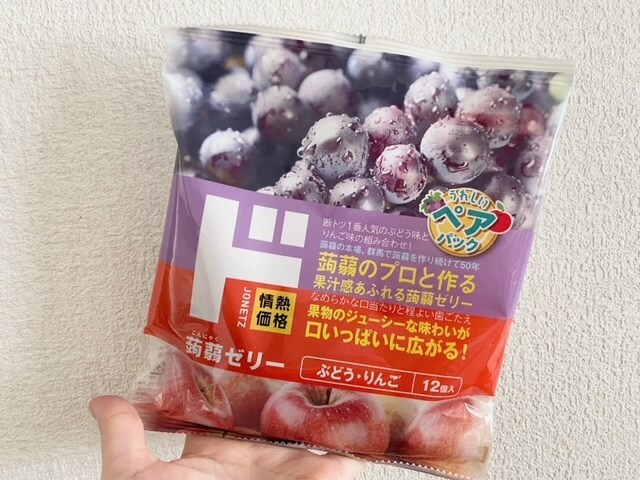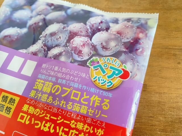 今回はぶどう味とりんご味の2種類入った蒟蒻ゼリーを購入。