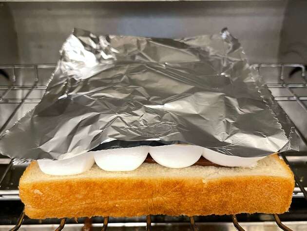 マシュマロが焦げないようにアルミをのせてさらに2~3分焼きます。