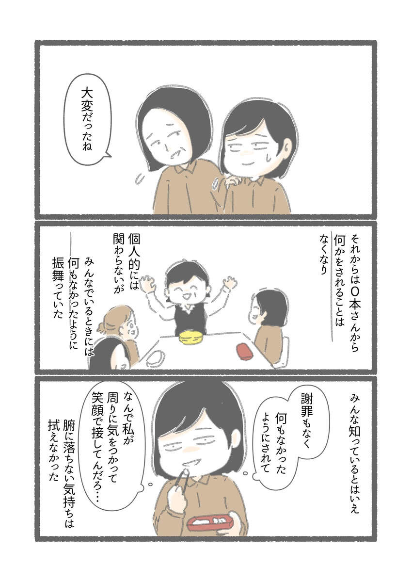 上司のYさんや周りの同僚の誤解を解くことはできましたが、結局O本さん本人から謝罪を受けることはありませんでした。