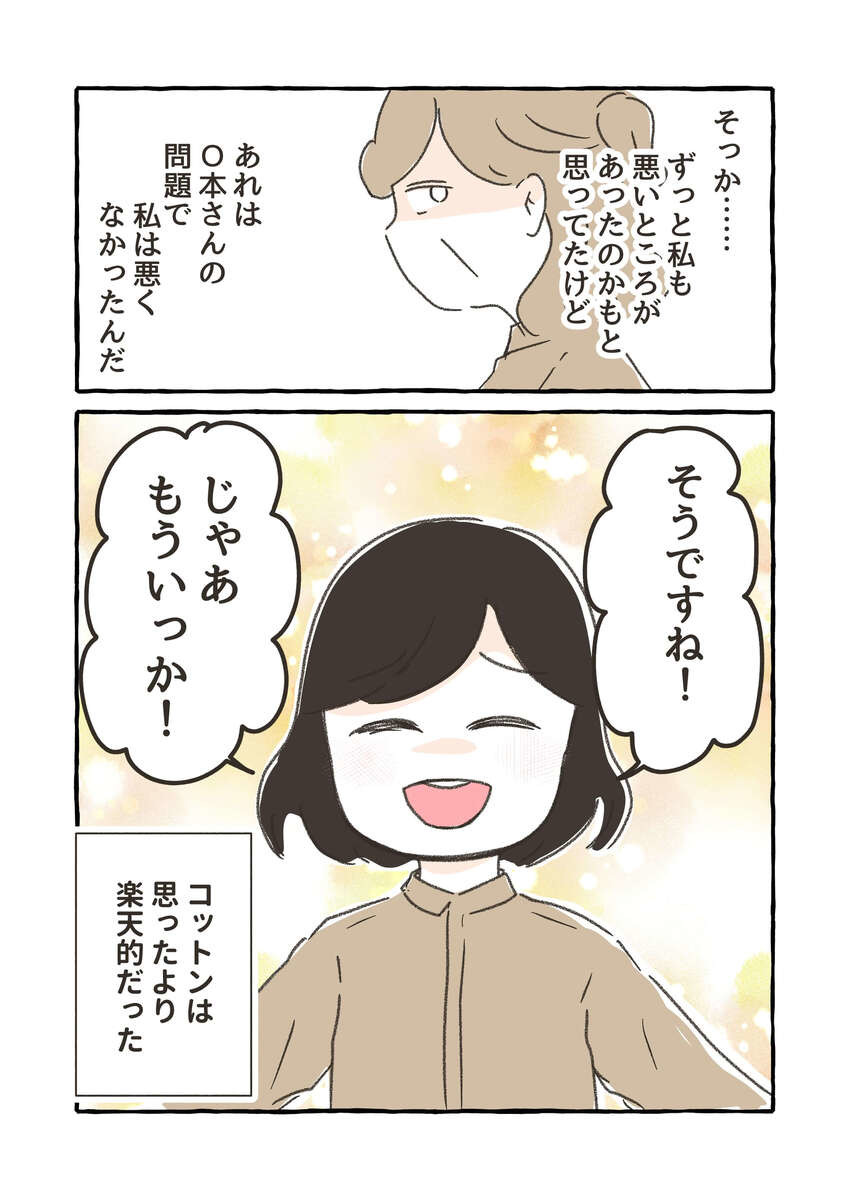 根底にはO本さん自身の色々な劣等感があって、若くて家庭円満なコットンさんが羨ましかったのかもしれませんね。