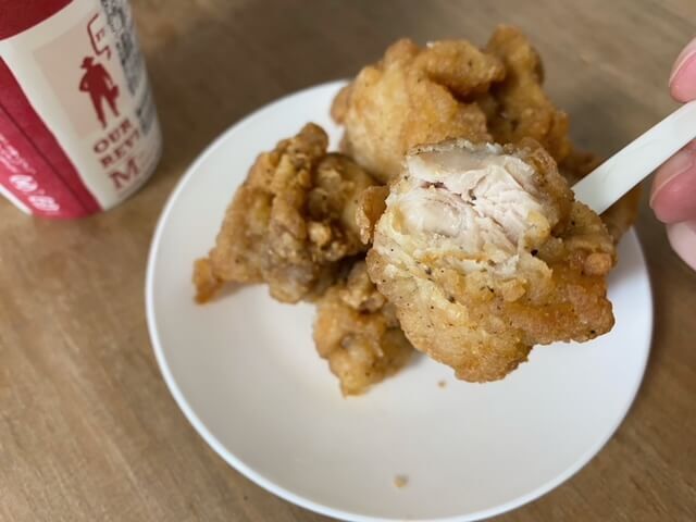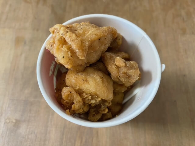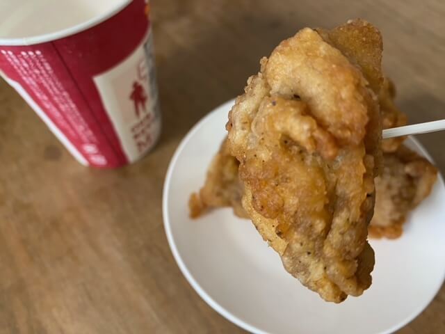 フライドチキンはプレーンとうま塩味が販売されていて、見た目はほぼ変わりません。うま塩味のほうがお肉の甘みがより感じられて、個人的にはうま塩味派です。