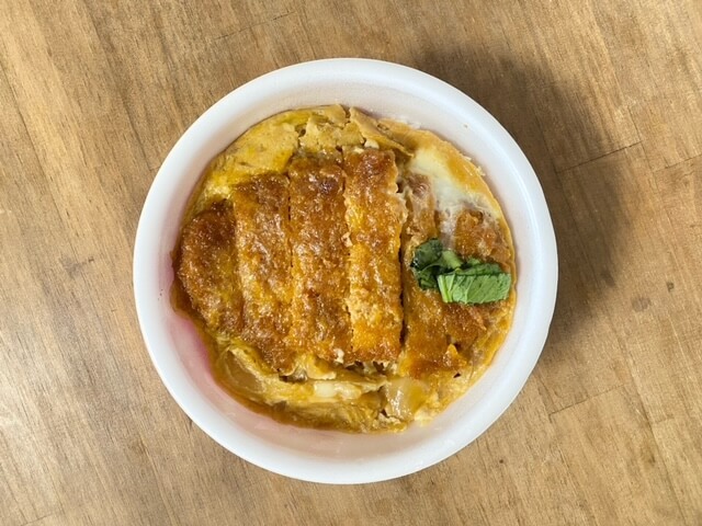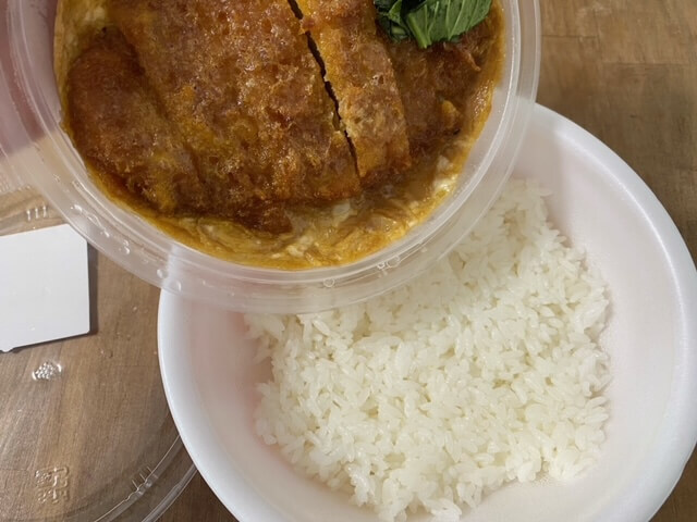 食べるときにカツとじをご飯の上に乗せるので、ごはんがふにゃふにゃになってしまうことはありません。