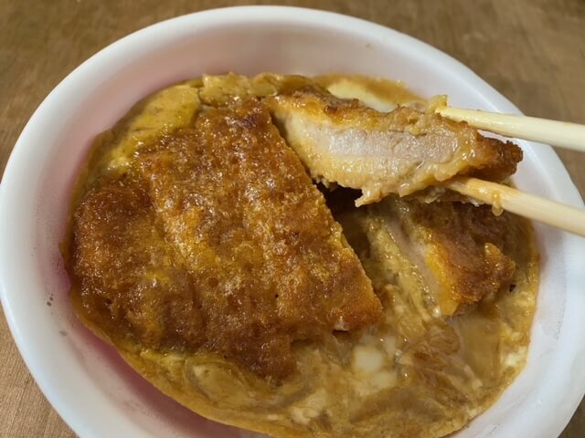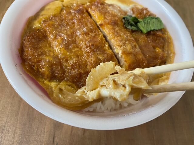 ただ、丼ものは知る多めが好きな私にとっては、汁がもう少し欲しい……。衣やたまごが吸ってしまうのかもしれませんね。
