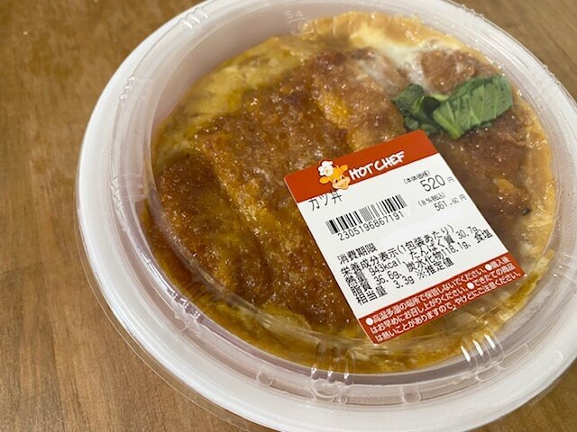 ホットシェフにはおにぎりや丼ものもあってどれもおいしいのですが、中でもおすすめなのが「かつ丼」です。