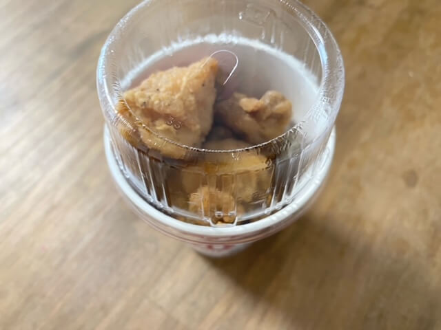 1カップあたりおおよそ5個フライドチキンが入っています。
