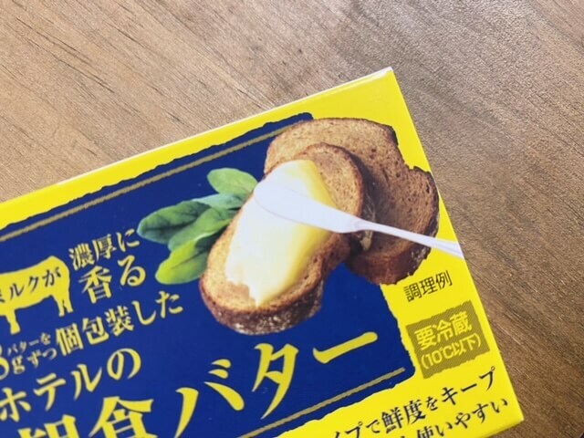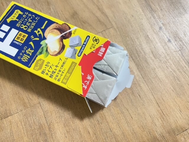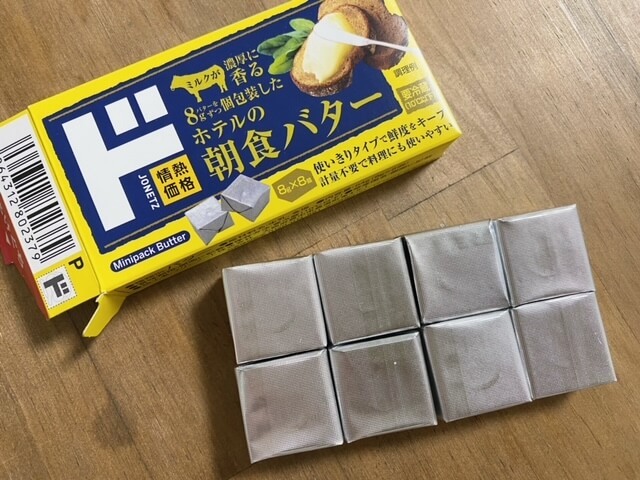 バターは1個8gの個包装されているものが、1箱に8個入っています。