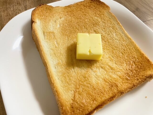 菓子パンのときもありますが、食パンを焼いてバターを塗ることがほとんど。