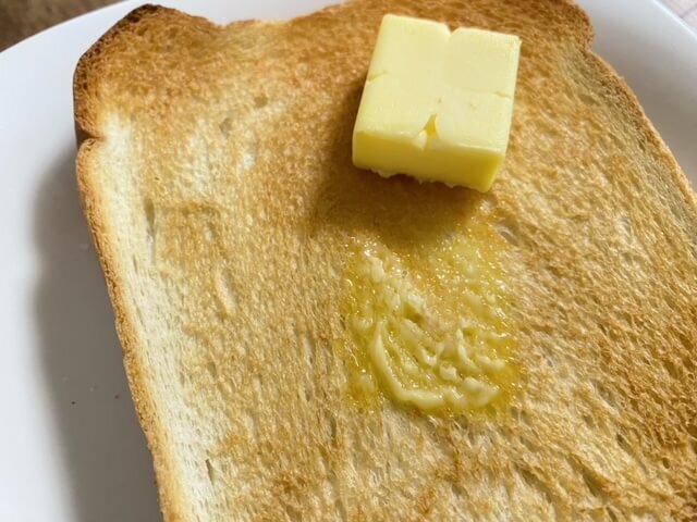 パンの暖かさでバターが徐々に溶けてくると、滑らかさが出てきて塗りやすくなります。