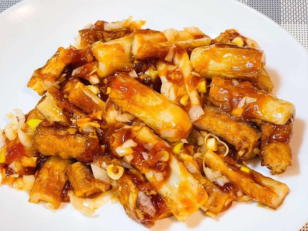 食べてみると、ちくわや厚揚げにタレがしっかりと絡んでとってもおいしいです。