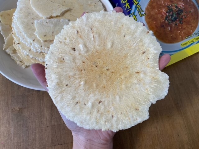 でも、片隅に「オニオンスープ風おせんべい」と記載されていました。