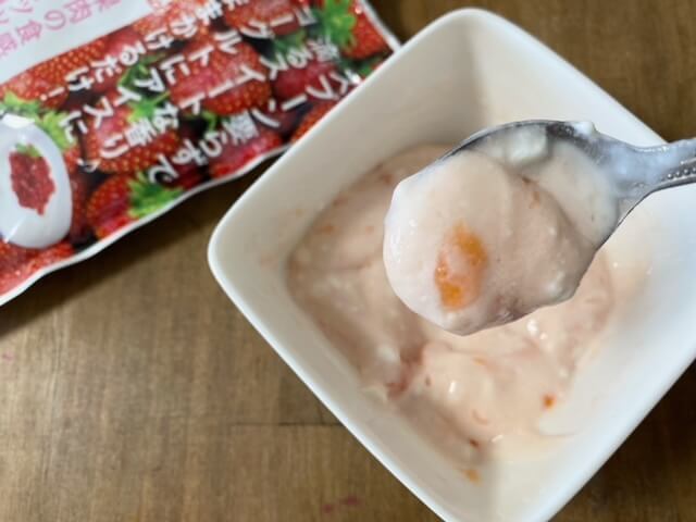いちごの果肉がたっぷり入っています。香りも甘くストロベリーです。