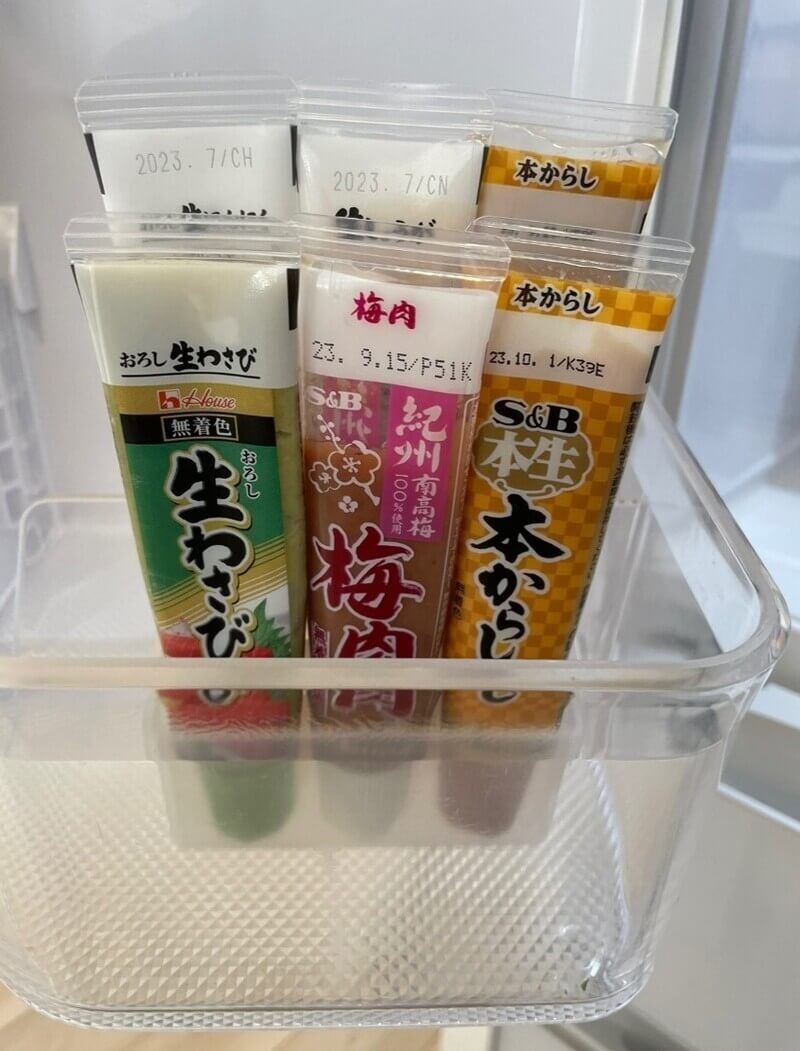 薬味チューブ6本をスッキリと収納できる「薬味チューブポケット」です。