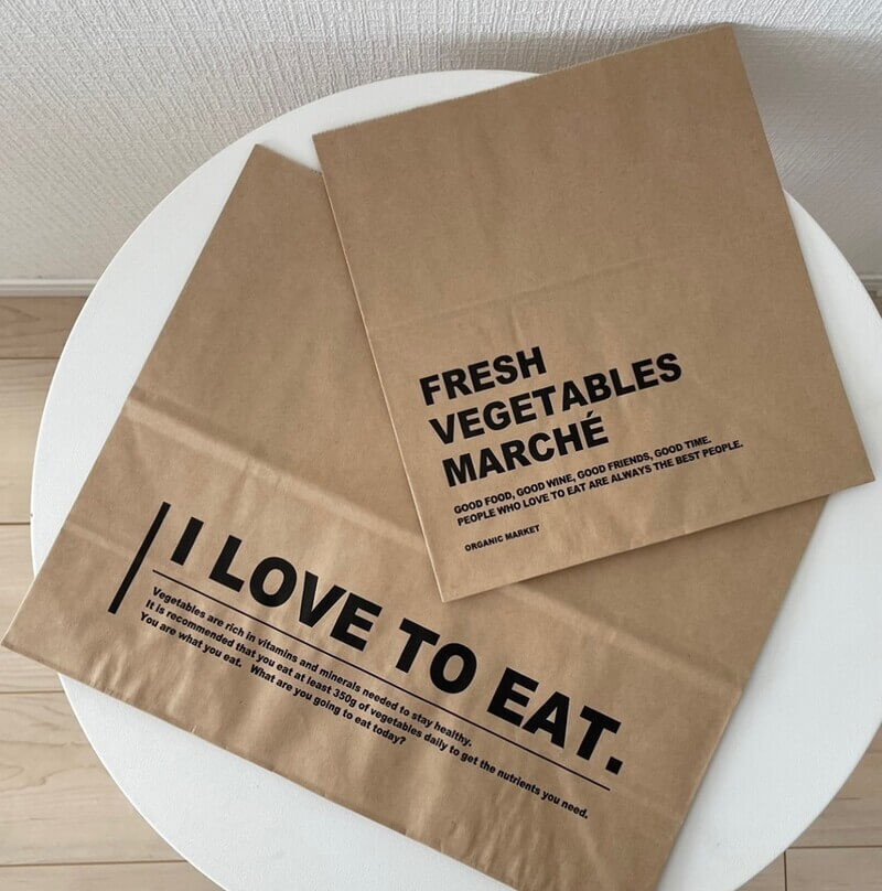 英字のデザインがおしゃれなクラフト素材のガゼットバッグです。