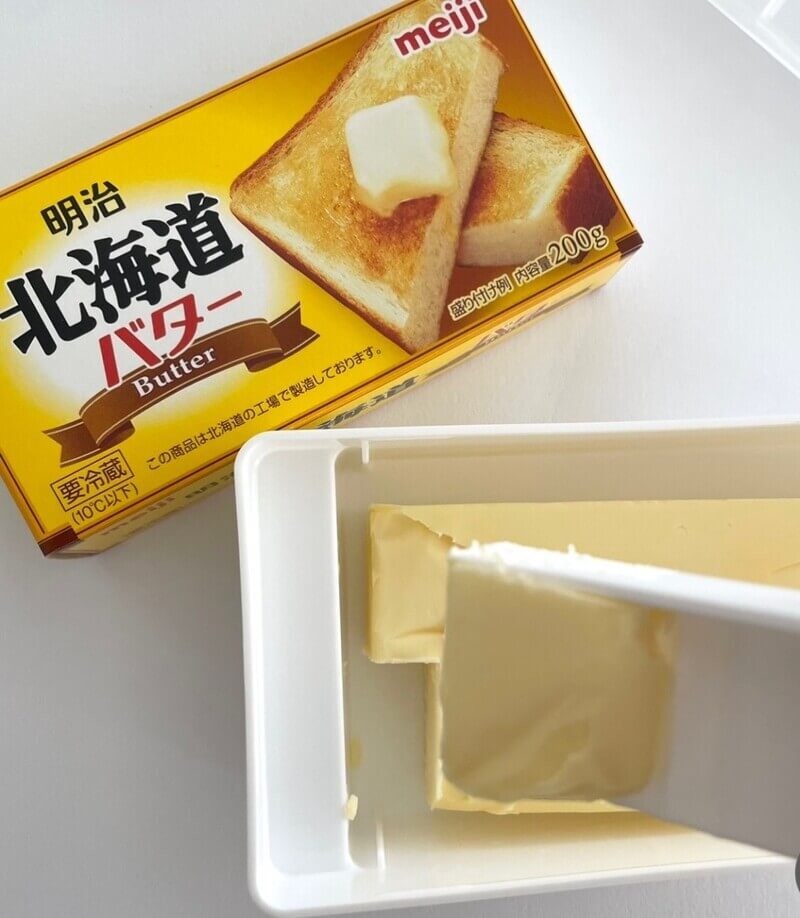 手を汚さずにバターカットができる、専用のカッターがついたバター保存ケースです。