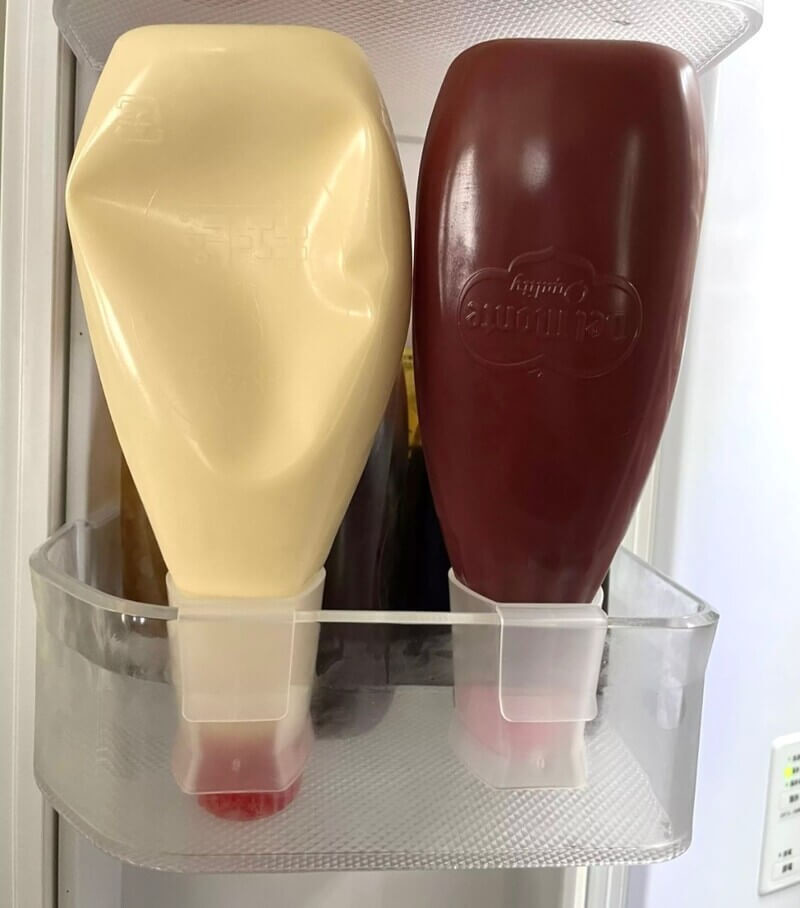 マヨネーズやケチャップを逆さまに収納できるホルダーです。