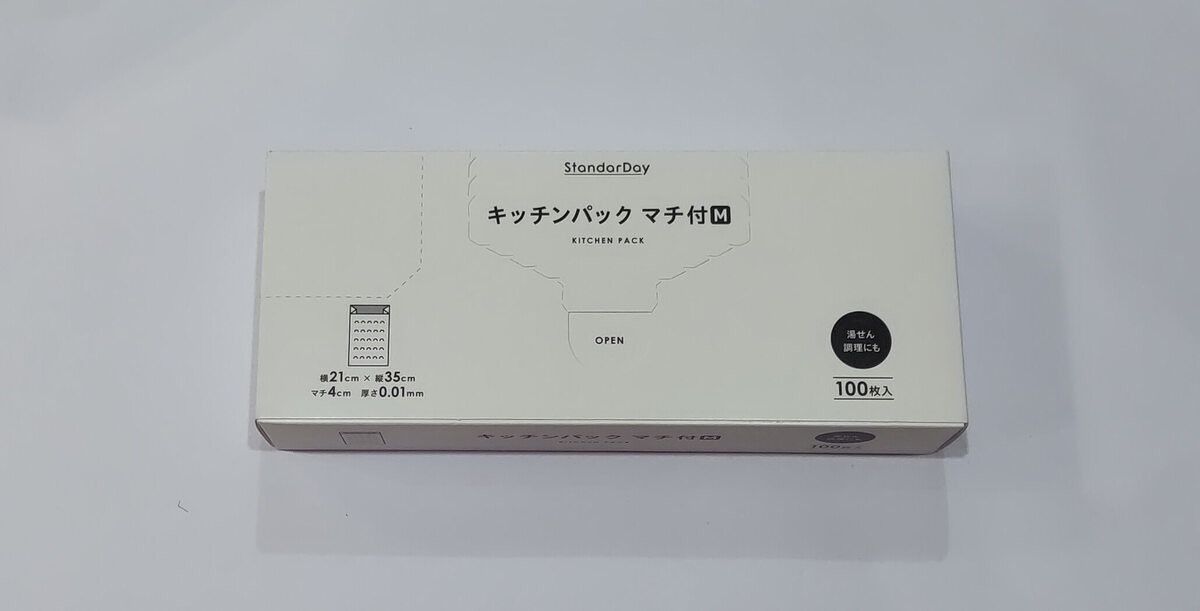 私が良く買うMサイズは、横21㎝、縦35㎝ほどの大きさで、食材の保存や調理にちょうどいい大きさです。