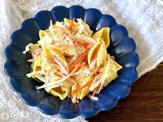 酢水でさらしていた玉ねぎの水気を切り、[B]と混ぜ合わせます。キャベツシュウマイと一緒に召し上がれ!