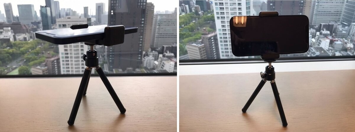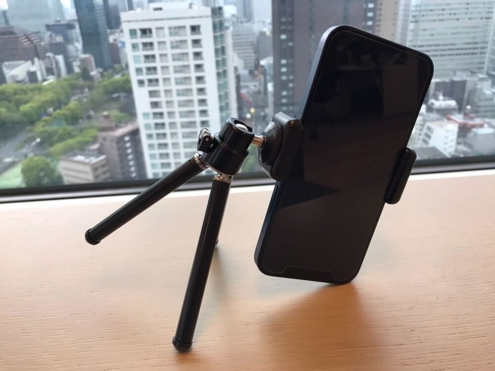 しかし、スマホ+単眼鏡を取り付けると結構重いため、付属の三脚ではバランスが取れる向きの範囲がかなり狭いように感じました。
