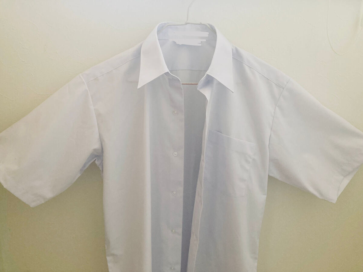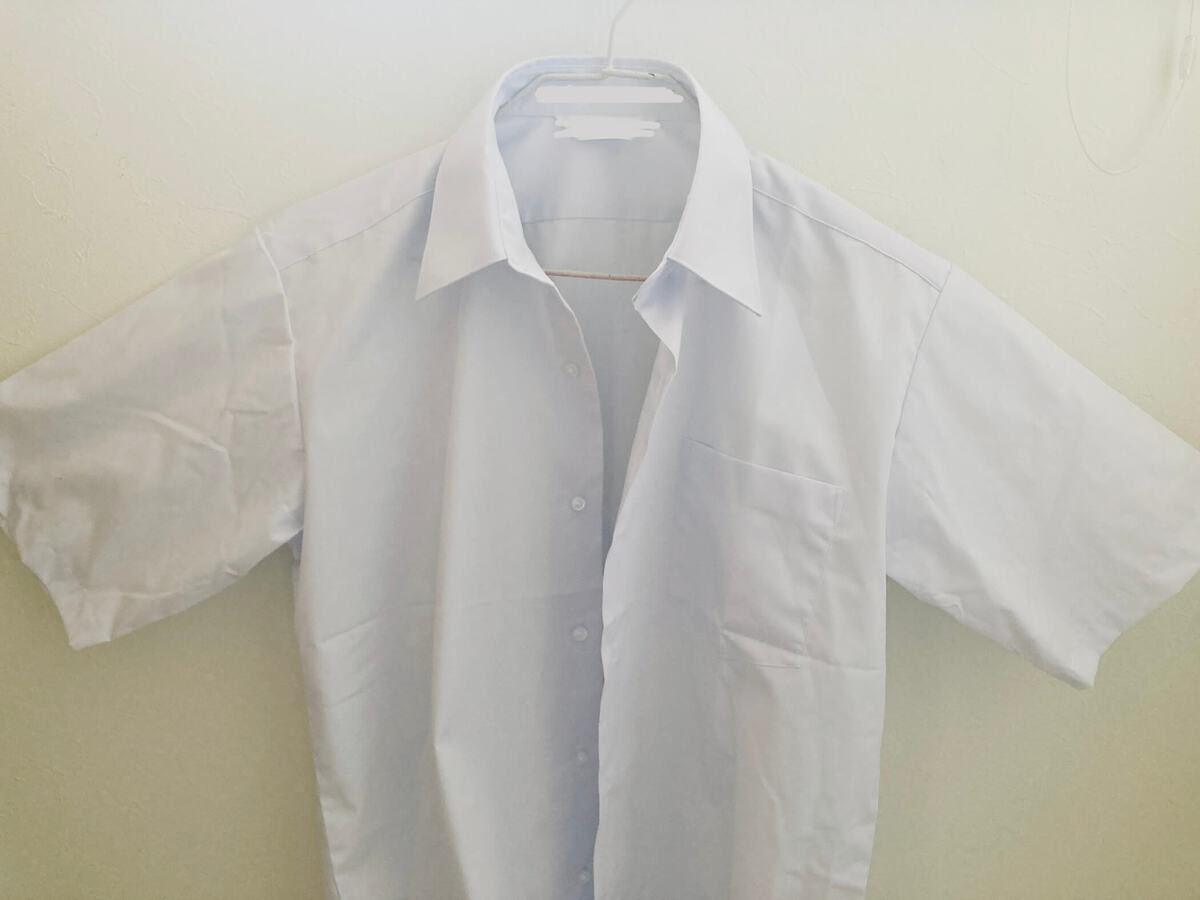 今回は検証のために、ワイシャツをわざとシワだらけにしています。袖や前身頃がくしゃくしゃです。