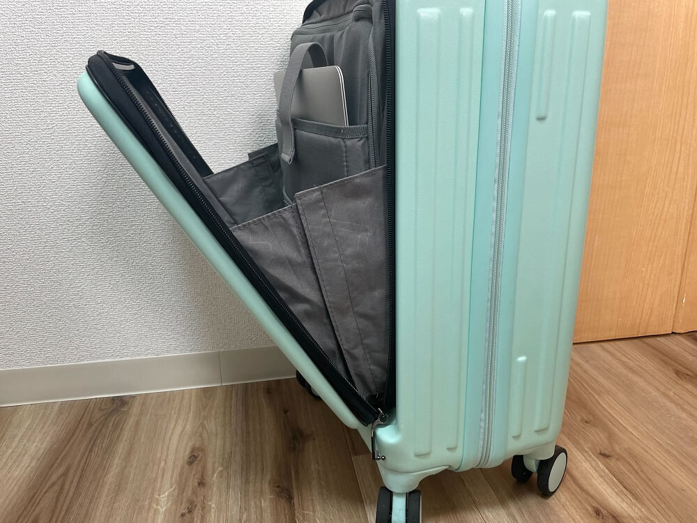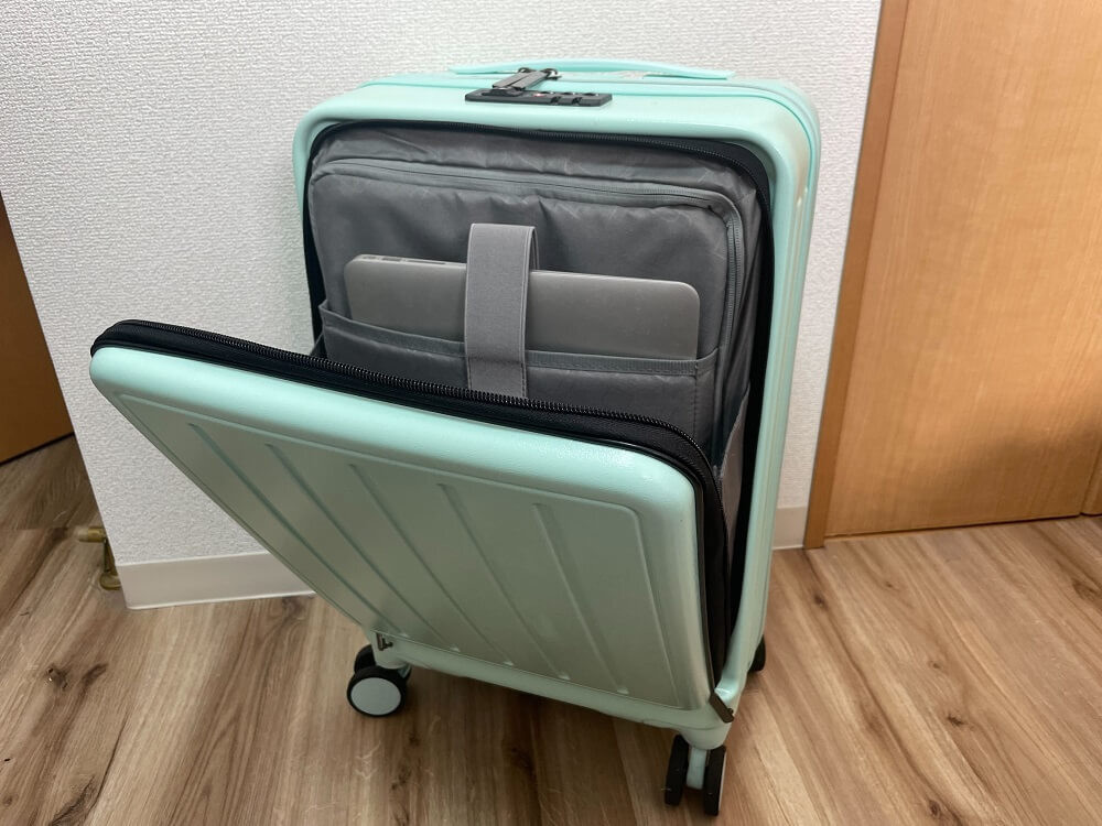 宿泊を伴う旅行の際は必ずパソコンを持っていくこと、またバッグをなるべく小さくしたいために、旅行に必要な書類等もキャリーケースに入れたいといつも思うこと、さらに最近SNSなどでいろいろな人がおすすめしているのを見て気になっていたため、今回の第一条件は「フロントオープンタイプのもの」と決めました。