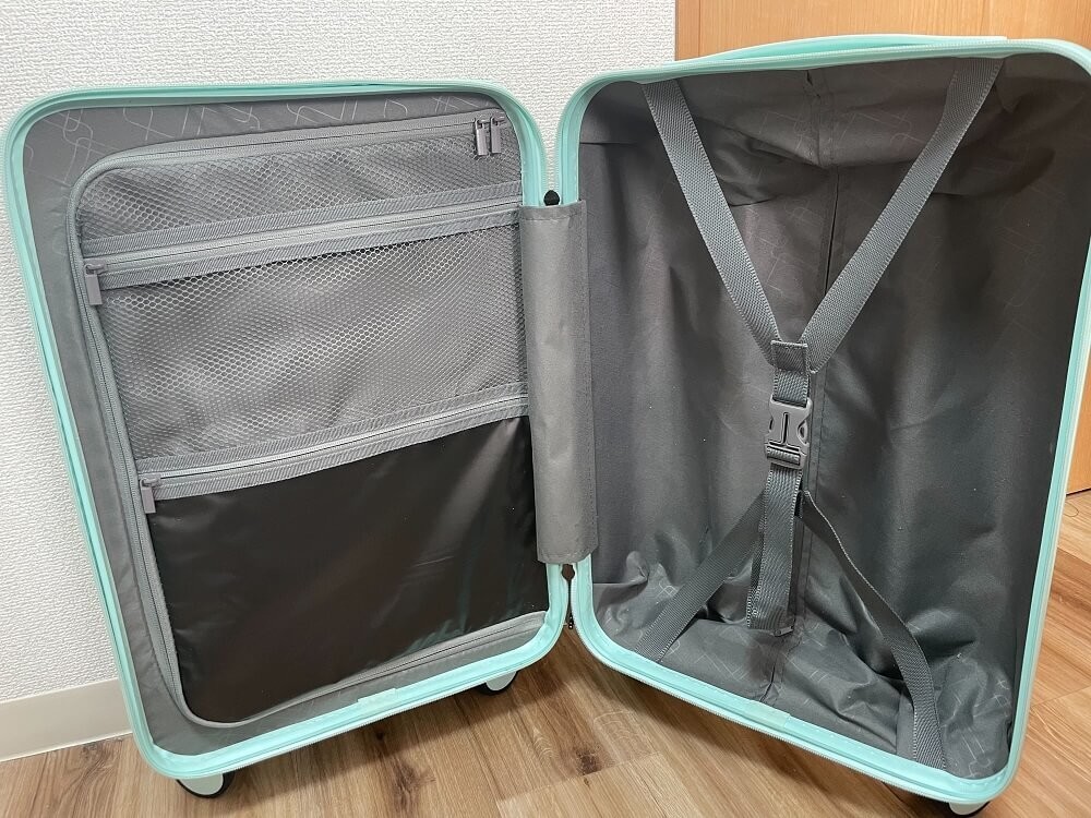 こちらが本体部分です。フロントオープン側は全面をファスナーで閉じられるようになっているので、キャリーケースを開閉する時に荷物が飛び出してしまう!なんてこともありません♪