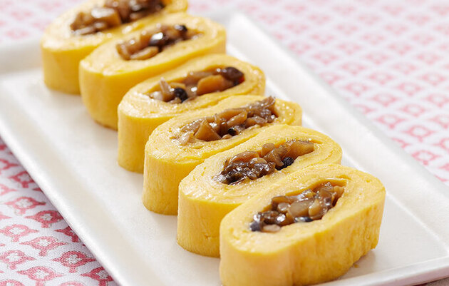 ストックできるきのこ常備菜「甘辛きのこダネ」の味と食感が、ふんわり卵焼きと相性ぴったり!
