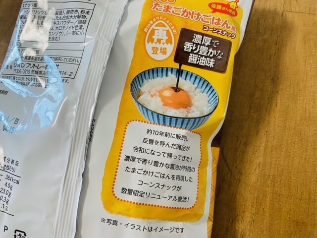 そして、今回出会ったのが「復活のたまごかけごはん風コーンスナック」。