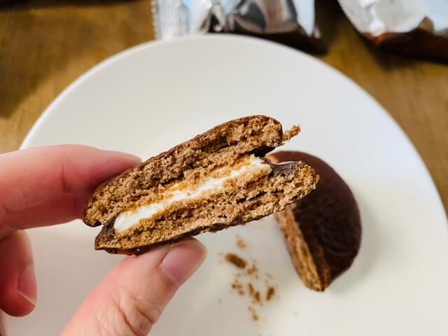 食べてみると、ふわっとしたケーキとマシュマロのもちもち食感でとても美味しいです。
