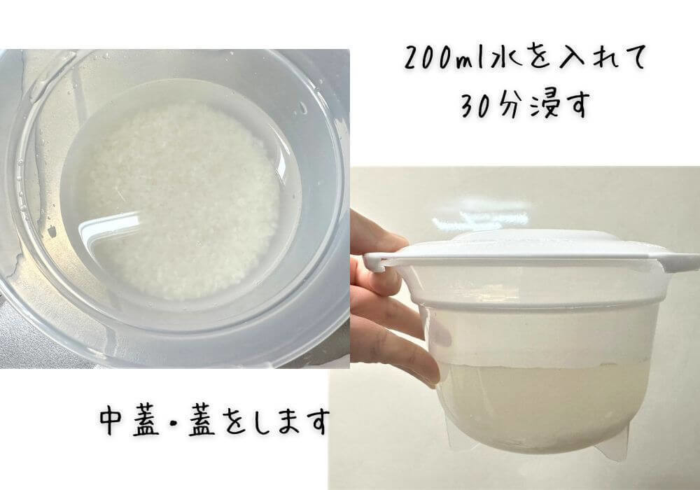水を200ml入れたら、そのまま30分以上浸けます。