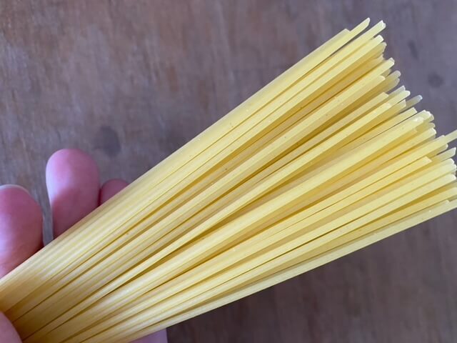 ただしゆで時間が8分と、他のメーカーの1.6㎜のパスタと比べると1分ほど長めです。