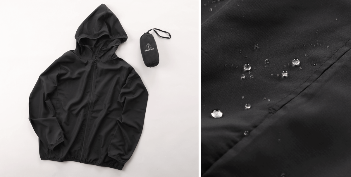 続いては、梅雨の時期におすすめの「撥水ポケッタブルパーカー」を紹介します。